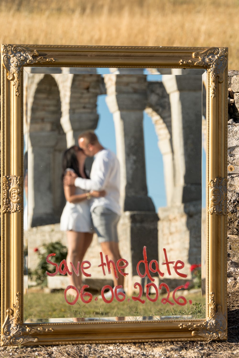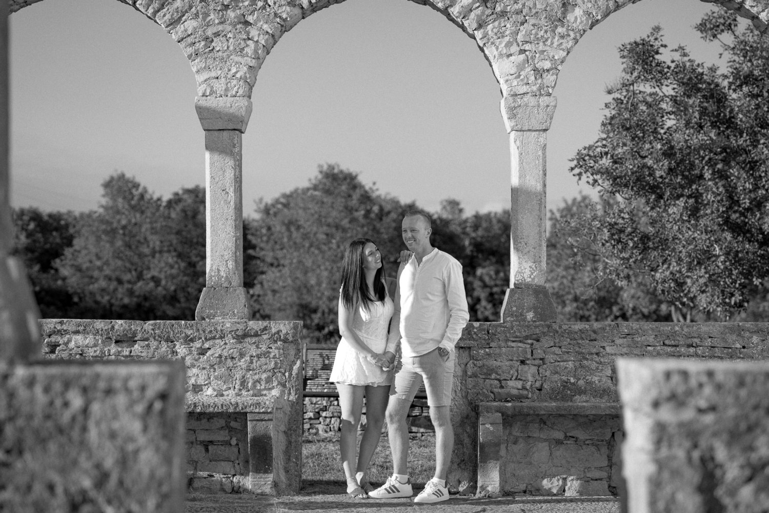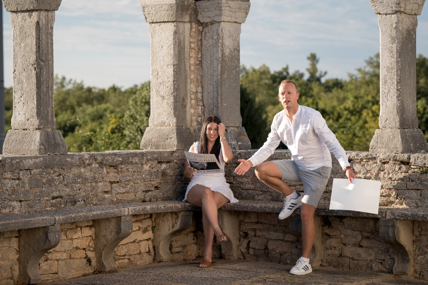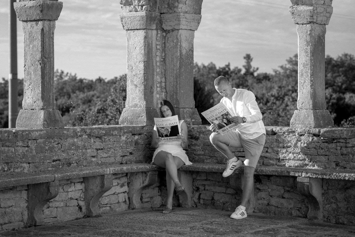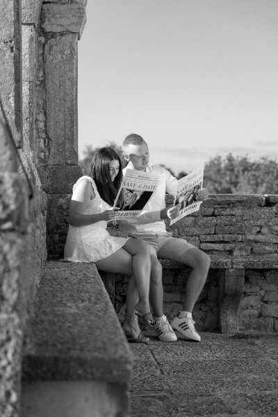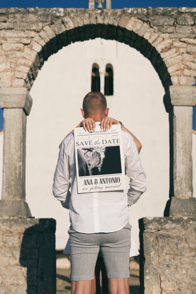 Između grubih kamenih stupova Crkva sv. Foška, dvoje ljudi dijeli mali, gotovo neprimjetan trenutak. Svaki u svom kutku, a opet u istom ritmu – listaju stranice koje nose njihova imena i datum koji će ih zauvijek povezati.